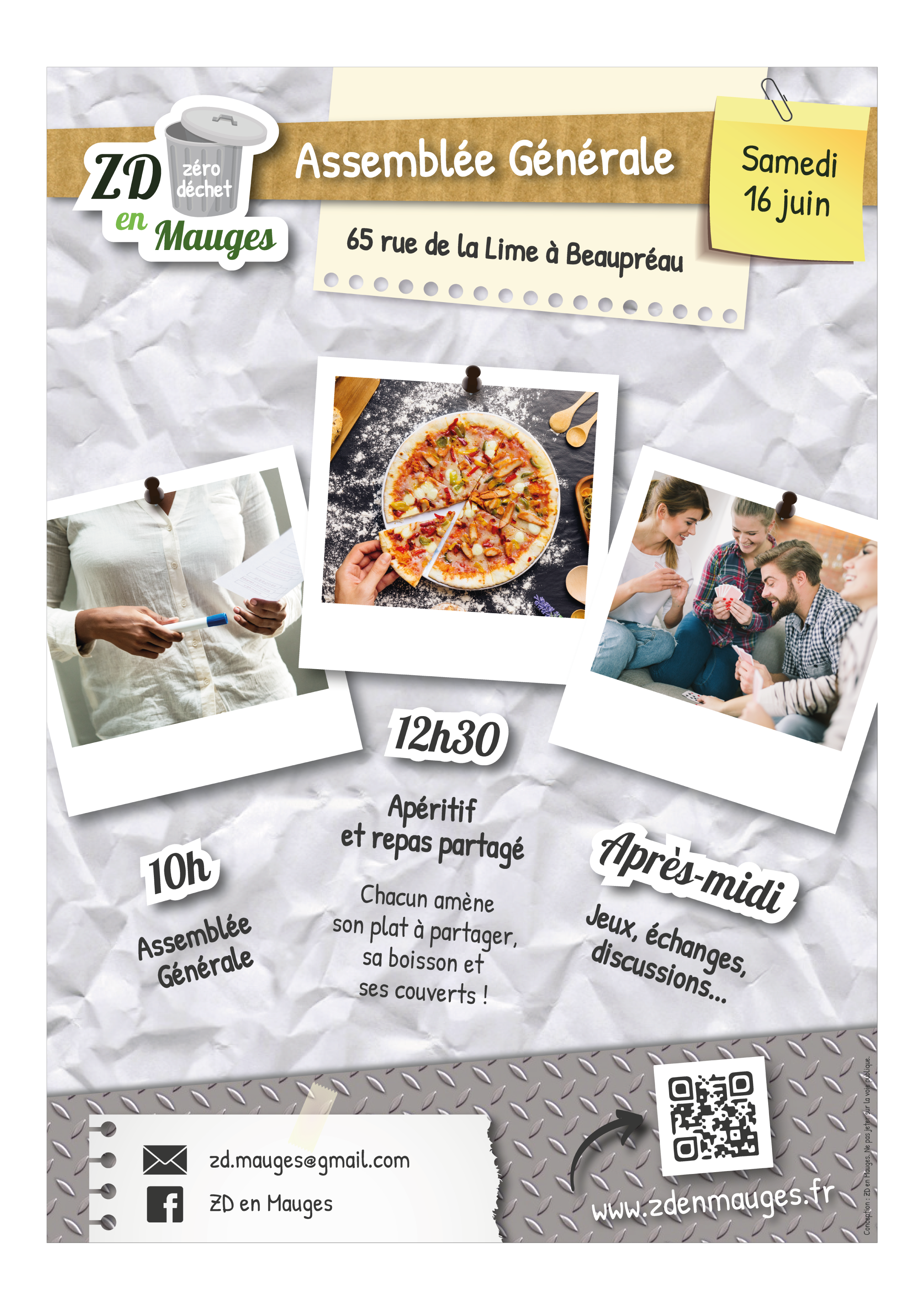 L’équipe de ZD en Mauges a le plaisir de vous convier à sa prochaine Assemblée Générale qui aura lieu le samedi 16 juin à 10H à la Maison des possibles à Beaupréau.