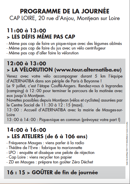 Nous serons présents pour l’accueil du tour Alternatiba à Montjean-sur-Loire le lundi 9 septembre.