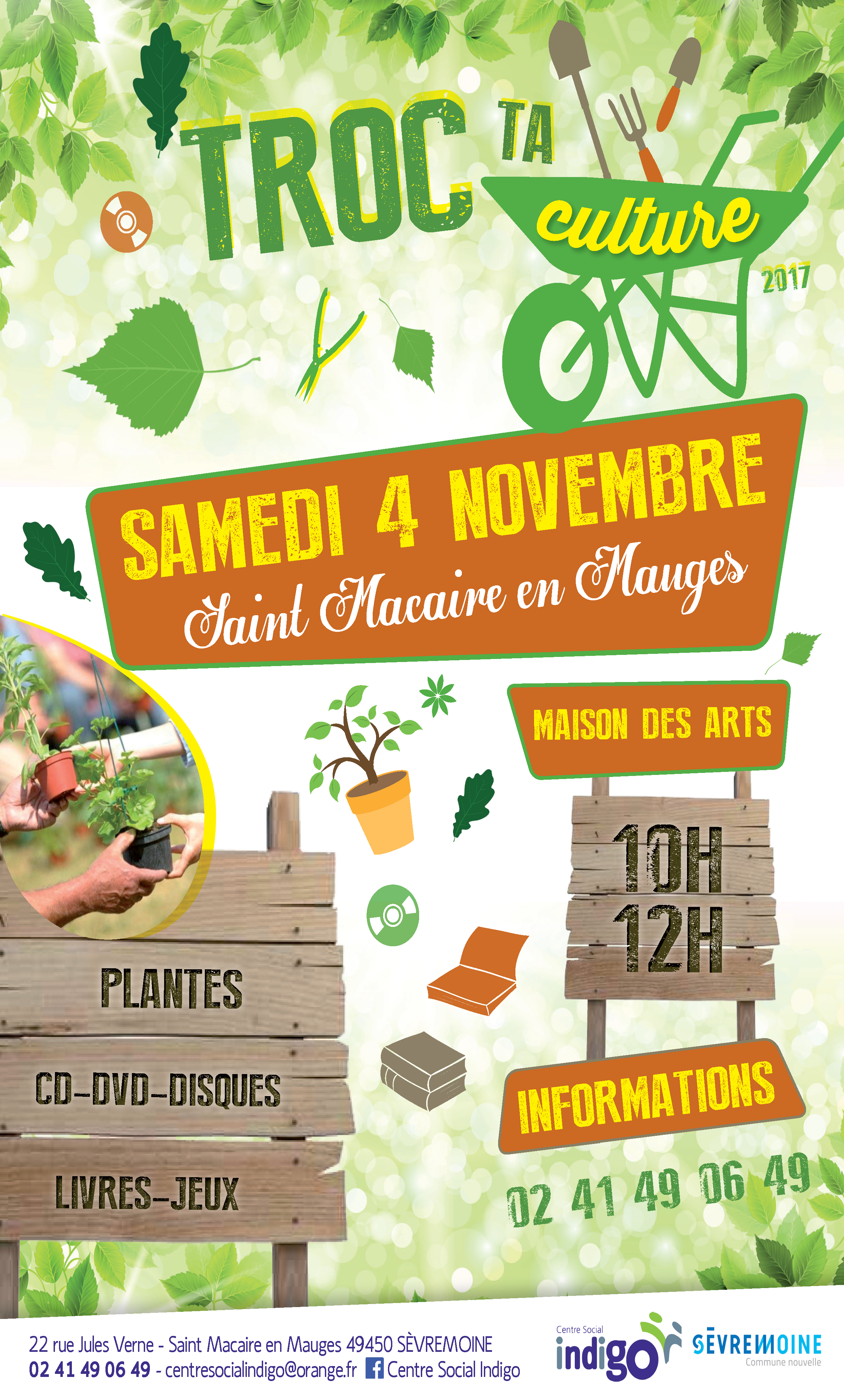 L’association a été invitée à participer au prochain Troc ta Culture de Saint-Macaire-en-Mauges organisé par le centre social qui aura lieu le samedi 4 novembre à 10H afin d’y tenir un stand et y présenter l’association.